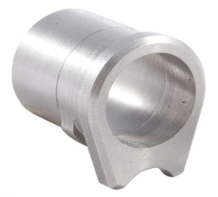 Straight-bored bushing, CNC machined from solid bar stock and designed for hand-fitting to obtain the best accuracy. Extra thick, .125" flange extends slightly farther than the original factory bushing for maximum barrel protection. Contoured, beveled edge around the flange provides a nice streamlined appearance and smooth holster entry and exit. Fits slides with .699"-.705" ID and barrel with .575"-.583" OD.