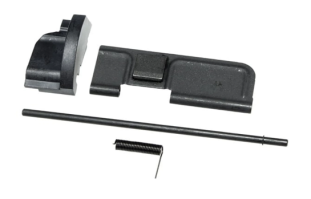 Ideal for 9mm or .22LR builds, this drop in ejection port cover kit comes with a steel cover, pin, spring, and polymer gas deflector. Deflector is intended to keep gas and residue out of the shooter's face, using it as a brass deflector on anything larger than .22LR can result in damage. Cover comes with detent and detent spring installed.