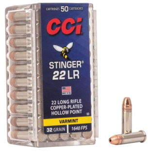 Home » Deal » CCI .22 LONG RIFLE 32GR COPPER PLATED HP STINGER AMMUNITION 50RDS - 0050