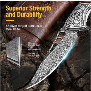 Superior Material: This damascus knife pocket knives is skillfully crafted using a combination of Damascus steel and a VG10 steel core, ensuring exceptional strength and durability.