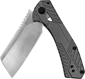 The Static's cleaver-style blade is ideal for slicing and chopping with a slight belly curve for enhanced versatility. The blade measures 2. 8 inches (7. 1 cm), made of premium 8Cr13MoV stainless steel Robust, high grip handle Features a black satin finish with dark black pivot and frame locking mechanism for safe and dependable use and folding. Measures 3. 8 inches (9. 7 cm) when closed Manual, unassisted opening with a flipper and KVT ball-bearing opening - opens one-handed. Once open, the jumping on the blade spine facilitates precision cutting and provides additional control The static unites form and function; higher handle position lets you Bear down powerfully on the task at hand. From household tasks to outdoor tasks - this knife does it better Made with pride by Kershaw Knives and backed by our product - our commitment to our product, your safety, and ease of use. Includes free sharpening and repair when you send your blade in for service