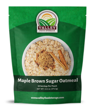 Valley Food Storage Maple Brown Sugar Oatmeal features just the right amount of sweetness and can be used as a snack or as a dish all on its own, making it perfect for a quick and convenient breakfast or lunch for the whole family. Each pouch of maple brown sugar oatmeal contains 10 servings.