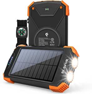 Qi Wireless & Solar Power:10,000mAh wireless power bank with solar. Not just wireless power bank but wireless charger as well compatible with iPhone 13/13Pro/ XR/ XR MAX/ XS/ X/ 8/ 8plus, Samsung Galaxy S9/S9plus S8/S8plus and all qi-enabled mobile devices. Friendly Reminder on Solar:kindly know that solar charging is an additional feature, Taken the small panel size, large capacity and uncontrollable sunlight intensity into consideration, the solar charging option works as a backup solution while other sources of power is unavailable. Make sure the power bank is fully charged before your trips. Extensive Tested Charging Times:The charging times of the solar phone charger have been extensively tested. Itself can be fully recharged around 6hours with 5V/2A adapter, It can charge iphone7plus up to 2.2times, iPhone X up to 2.3times, iphone8 up to 3.5times. Sturdy Durable and Compact Size:the portable charger is made of premium ABS materials and lithium polymer battery, highly sturdy and durable. Its equipped with two USB, type C, dual flashlights and a compass kit. Light weight and compact size. Dual Flashlight & Compass Kit:The solar phone charger is built with dual bright flashlight, and comes with a portable compass kit, a handy tool for outdoor activities, like camping, cycling, fishing, traveling, hiking and beaches.
