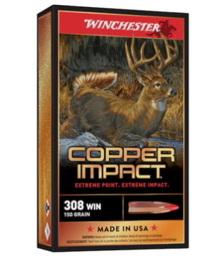 Winchester Copper Impact rifle bullets are engineered with longer ogives and boattails providing higher ballistic coefficients, which increases accuracy at longer distances. With Copper Impact, a hunter gets monolithic solid copper Extreme Point® hollow-point bullets with distinctive polymer tips that create both a large-impact diameter and immediate expansion upon contact. This ammunition is new production, non-corrosive, in boxer primed, reloadable nickel-plated brass cases.