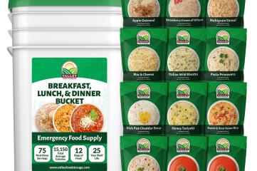 The Valley Food Storage 1050 Serving Long-Term Emergency Food Kit puts quality first.Packed with a wide variety of hearty and wholesome breakfasts, entrees, and essential proteins, this Kit will fuel you with high-quality calories to keep you aler