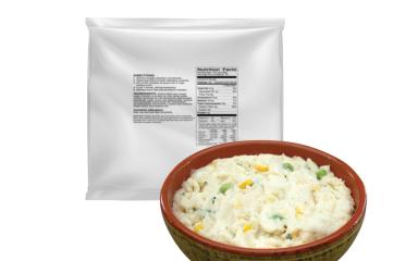 Hearty and comforting, Farmhouse Potatoes are made with dehydrated potato flakes, freeze-dried corn and peas, creamy chicken flavor, and a touch of parsley. Just add cold water—no heat or cooking required.