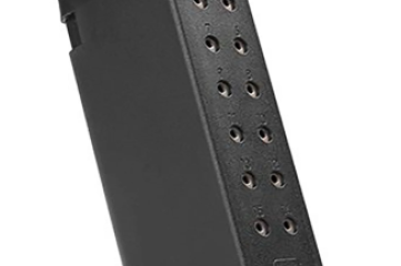 This GLOCK magazine is constructed from a hardened steel insert encased in high tech polymer to protect the magazine and prevent deformation, even when dropped from a great height.