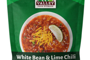 Valley Food StorageWhite Bean and Lime Chili features a thick and savory mild chili mixed with Great White Northern Beans, Pinto Beans, an assortment of vegetables and a hint of lime making it perfect for a quick and convenient lunch or dinner for